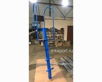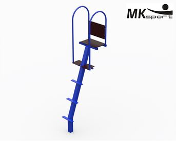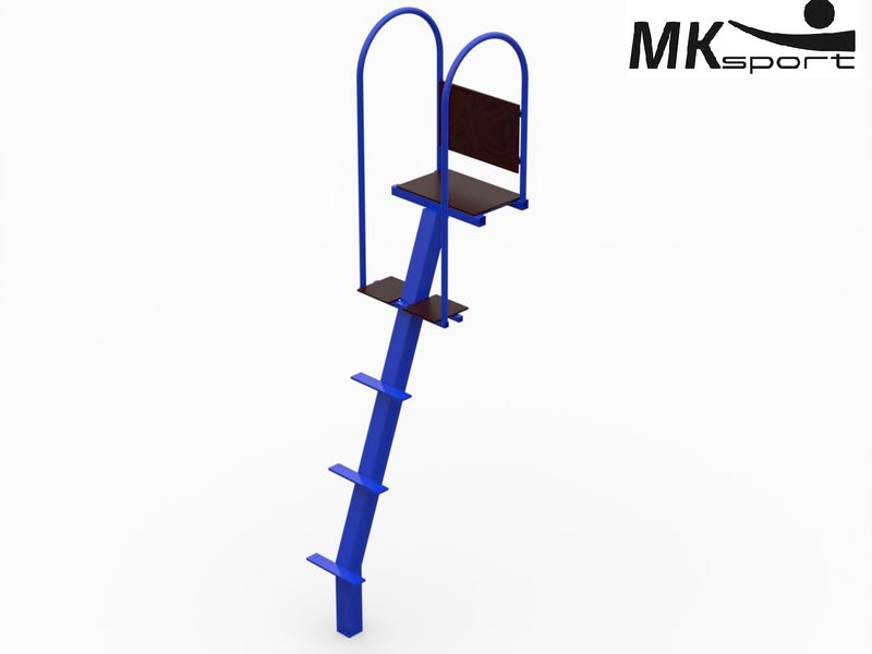 Стационарная судейская вышка на стакане для установки на крытых и открытых волейбольных площадках. Однобалочная конструкция изготовлена из профиля 80*80*3 мм, каркас сиденья и подножек из профильных труб 40*25*2, 25*25*1,5 и 27*3 мм. Сиденье, спинка и подножки выполнены из влагостойкой ламинированной фанеры. Положение судьи – сидя или стоя. Стандартный цвет вышки синий.