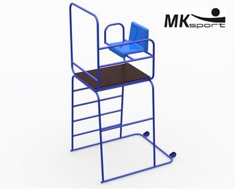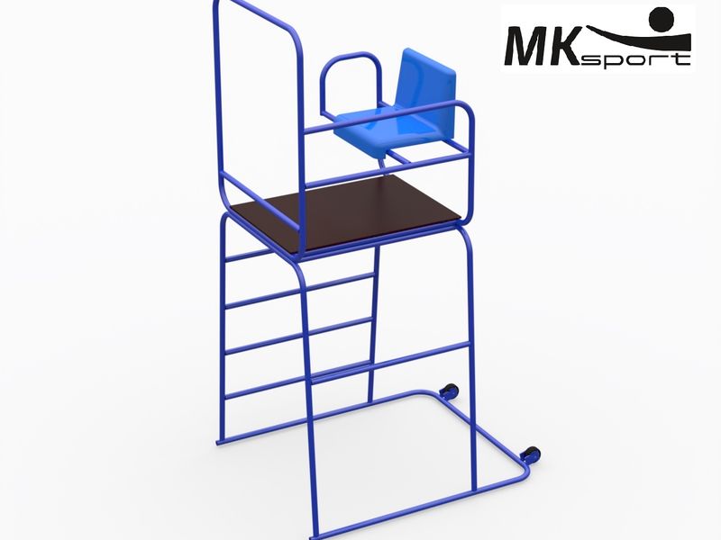 Универсальная вышка для судейства матчей по волейболу, теннису и другим игровым видам спорта. Каркас вышки изготовлен из круглой трубы 27*3 мм. Материал площадки для судьи – влагостойкая ламинированная фанера 9 мм с антискользящим покрытием. Судейское место оборудовано пластиковым креслом Лужники и поручнем для удобства судейства в положении стоя. Стандартный цвет каркаса и сиденья синий.