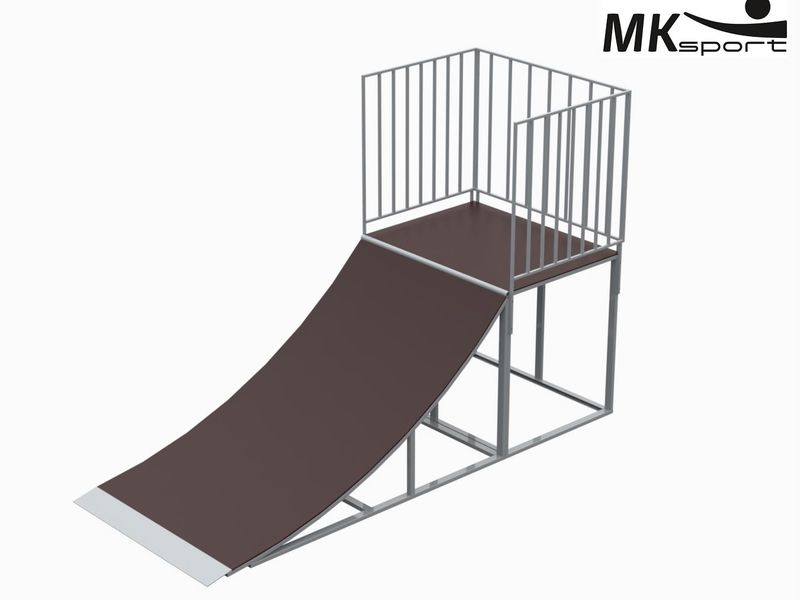 Разгонка является неотъемлемой частью скейтпарка. С ее помощью райдеры могут набрать скорость для выполнения различных трюков. Каркас разгонки изготовлен из профильных труб 60*30*2, 40*40*2, 42*3 и 20*20*1,5 мм. Материал обшивки – влагостойкая ламинированная фанера 12 мм. Для безопасности спортсменов стол с трех сторон огорожен перилами. По нижнему краю имеется металлический скат. Стандартный цвет конструкции серый.